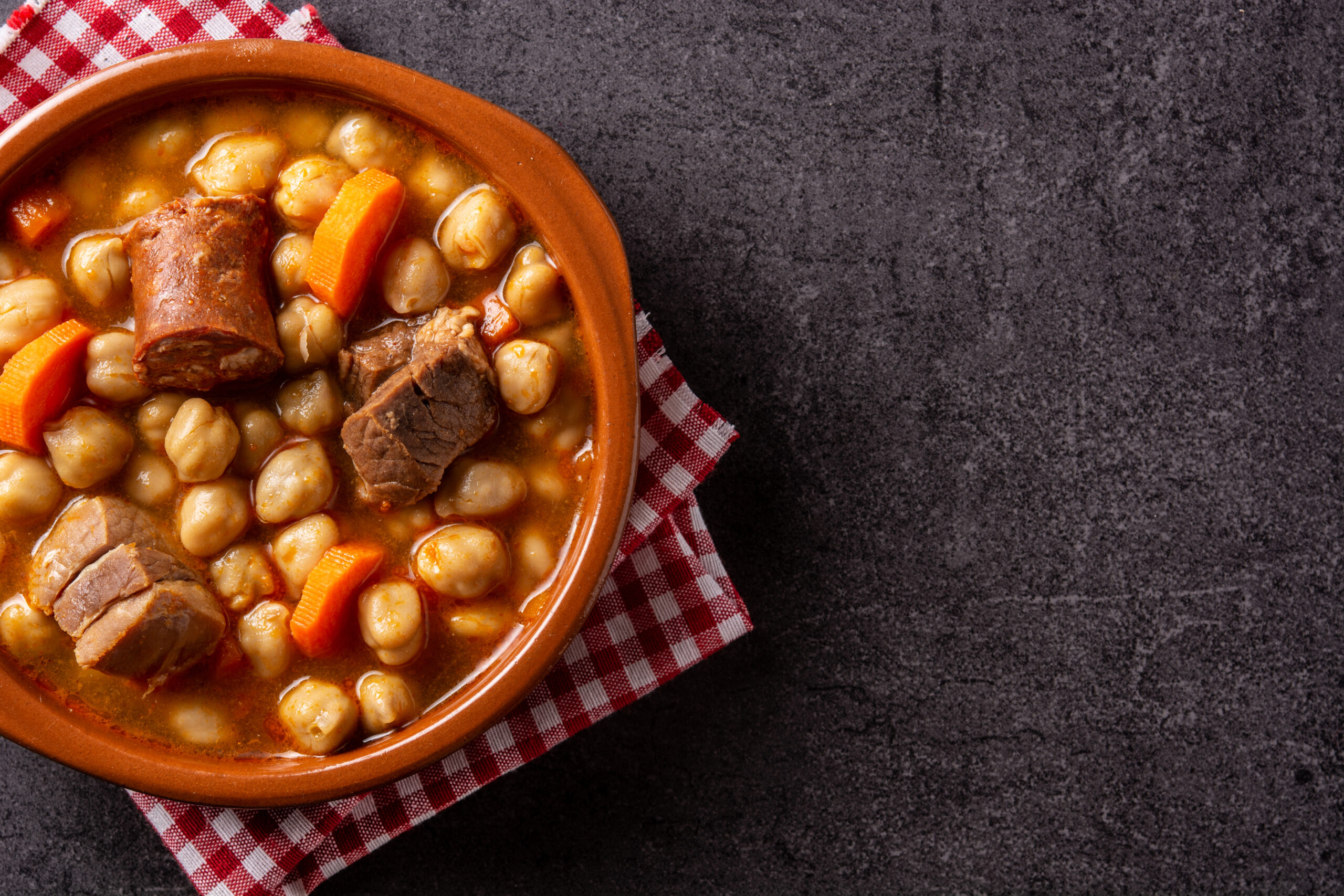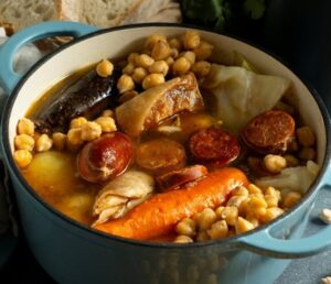 Sí, lo has leído bien. Hemos elegido como última opción un vino blanco para este cocido tan típico de Andalucía. Un plato que, a diferencia de los demás, el caldo tiene mucho más protagonismo y por eso, se convierte en una versión del cocido mucho más ligera que el resto. En algunas zonas, incluso, se le añade una hoja de hierbabuena al caldo para hacerlo aún más fresco.